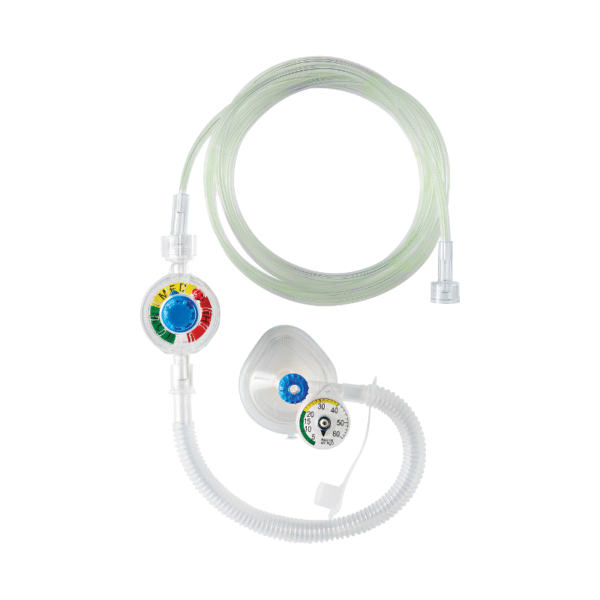 Neo-Tee, o reanimador de pieza en T, es un dispositivo diseñado para proporcionar ventilación con presión positiva a pacientes de hasta 10 kg. Permite controlar y asegurar tanto la presión inspiratoria máxima (PIP) como la presión positiva al final de la espiración (PEEP), mediante un manómetro de colores confiable y fácil de leer, que ofrece una visualización clara y permite limitar la presión según las necesidades del clínico.