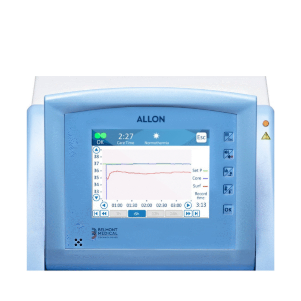 El Allon es un equipo servocontrolado de última tecnología diseñado para brindar terapia de normotermia de forma no invasiva en pacientes neonatales, pediátricos y adultos. Consta de dos elementos: el equipo Allon y la manta ThermoWrap™, que permiten un control preciso y continuo de la temperatura corporal (36,5 °C – 37,5 °C). Utiliza algoritmos que imitan la función del hipotálamo, calentando o enfriando automáticamente el agua que circula en la manta para mantener la temperatura requerida.